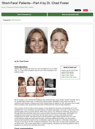 - Norris R: Invisalign Treatment Modified to Accommodate Patient’s Input. Cases & Commentaries in Orthodontic Technology 2002